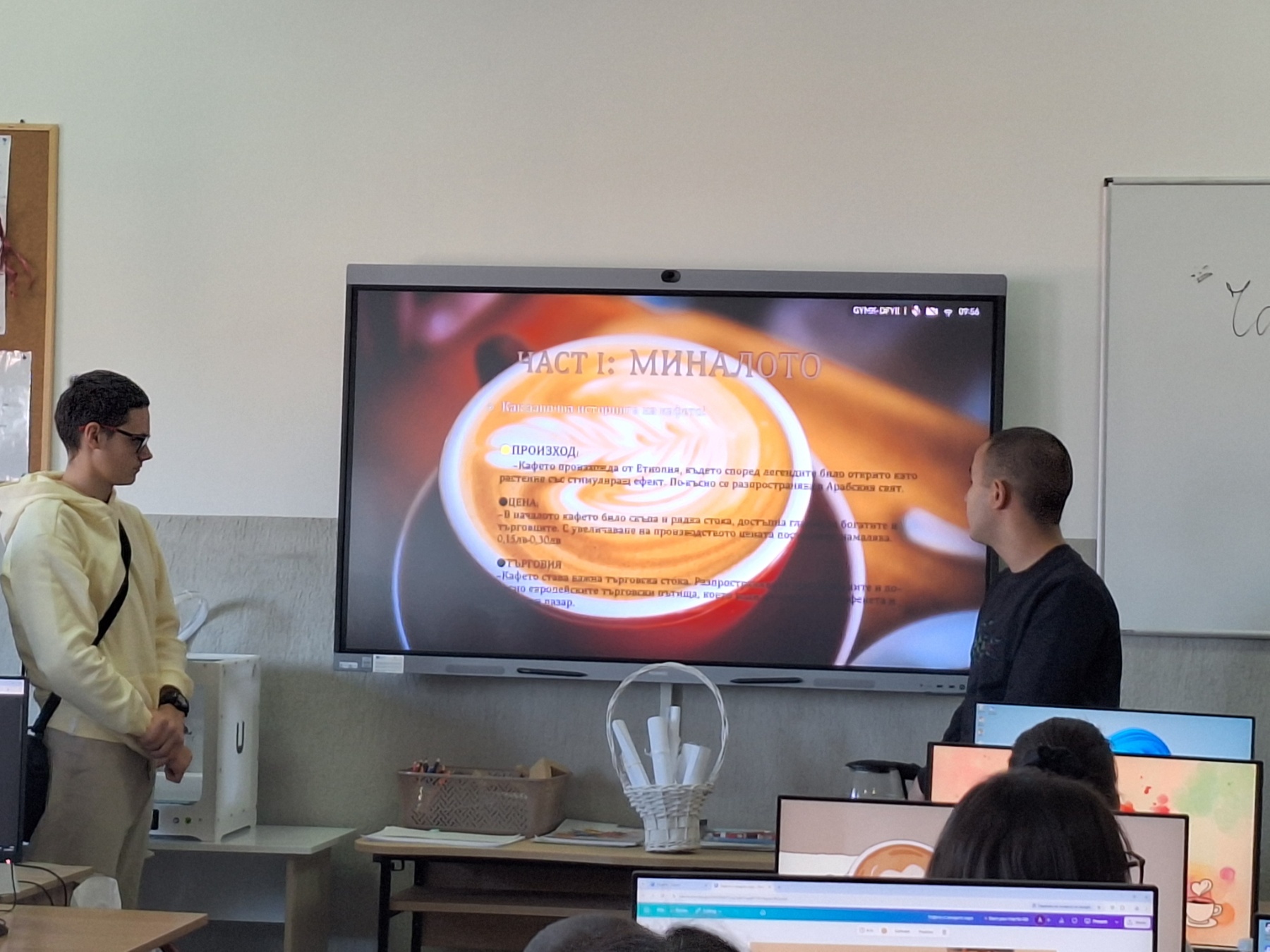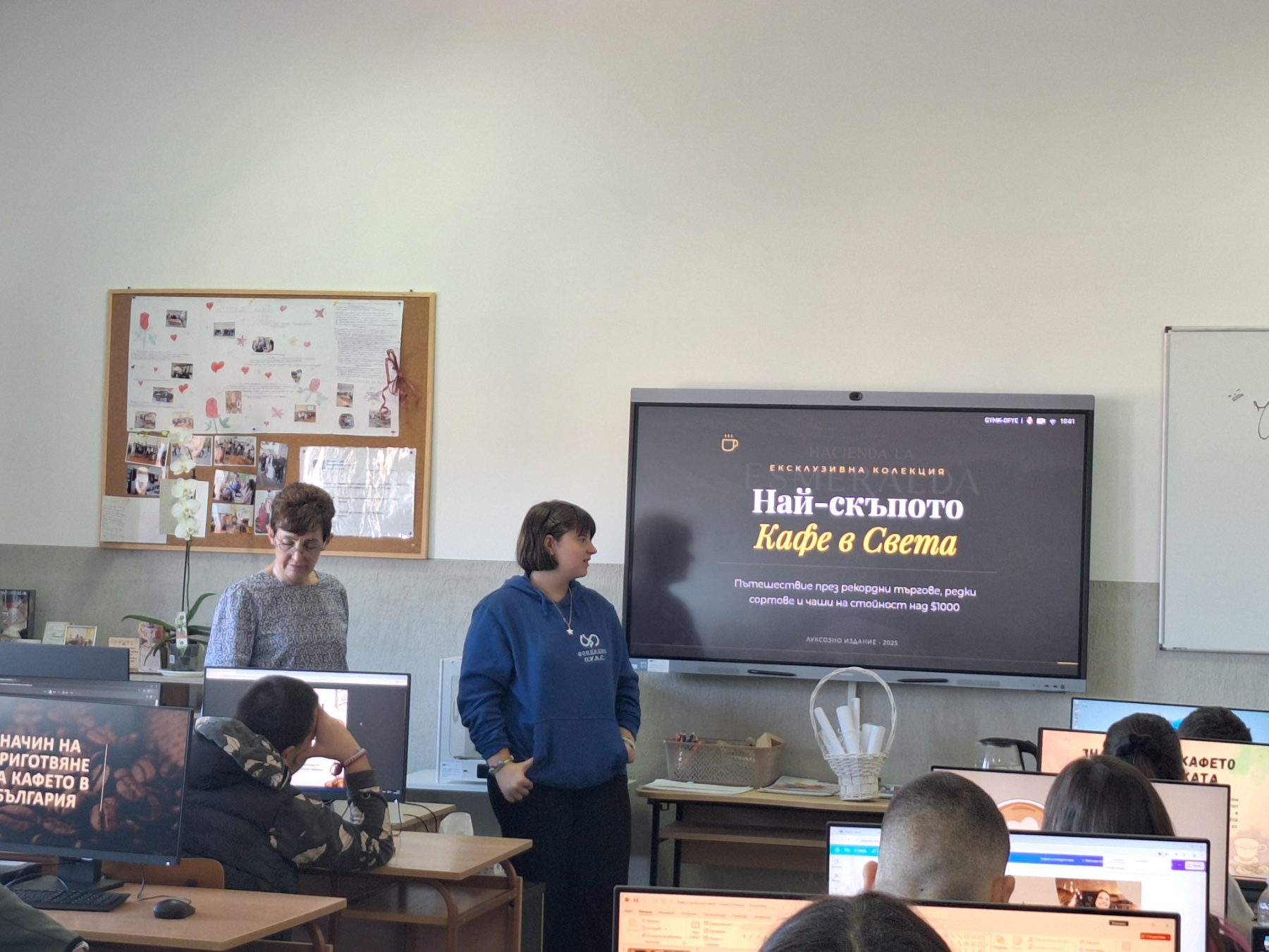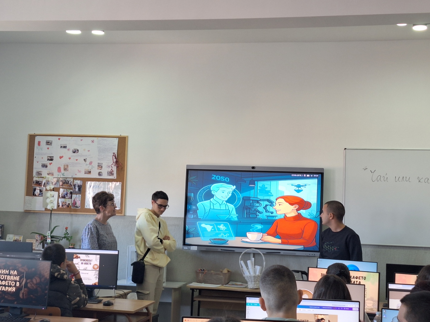 По време на урока учениците посрещнаха своите преподаватели, съученици и гости от Банка ДСК, като ги „преведоха“ през различните етапи на представянето. Приятният аромат на кафе създаде уютна атмосфера, а участниците имаха възможност да се запознаят и с икономически аспекти, свързани с потреблението и избора на напитки, както и с използването на ИТ инструменти за визуализация на статистически данни.