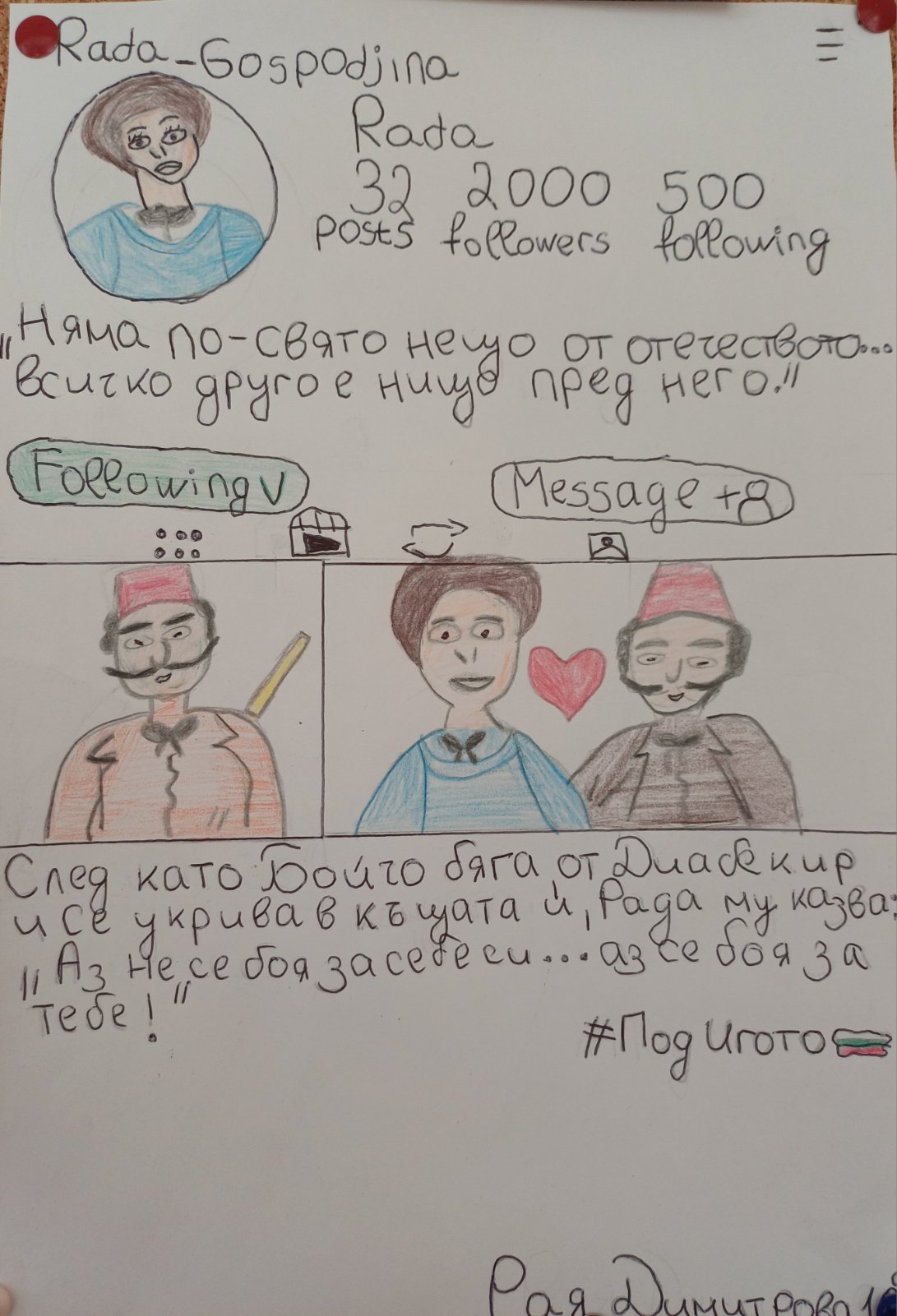 Един проект на 10.А клас под ръководството на госпожа Ангелова. Героите от „Под игото“ в социалните мрежи?! Как един нестандартен проект ни накара да четем между редовете. Какво би публикувал Бойчо Огнянов, ако имаше Instagram? Целта? Да погледнем на класиката през очите на съвременността – и да открием, че между старите редове се крият доста модерни идеи. Всеки ученик избра герой и трябваше да изгради негов дигитален образ – публикации, коментари, сторита. Със свой профил се сдоби дори мечката на доктор Соколов-Клеопатра.