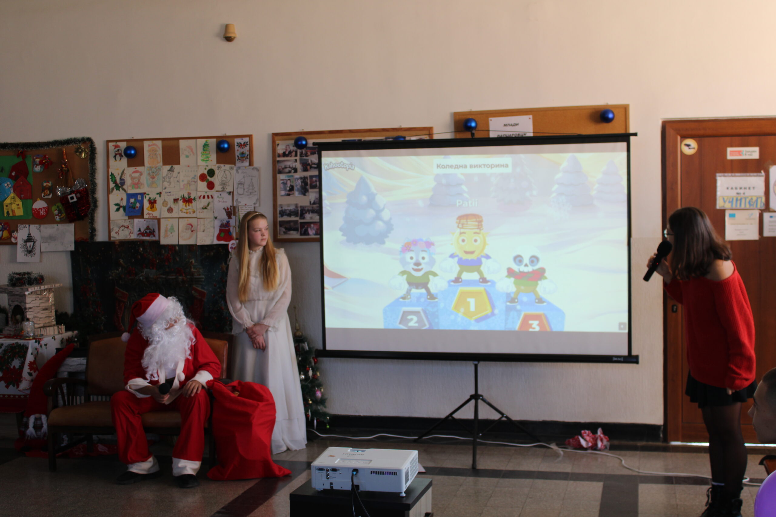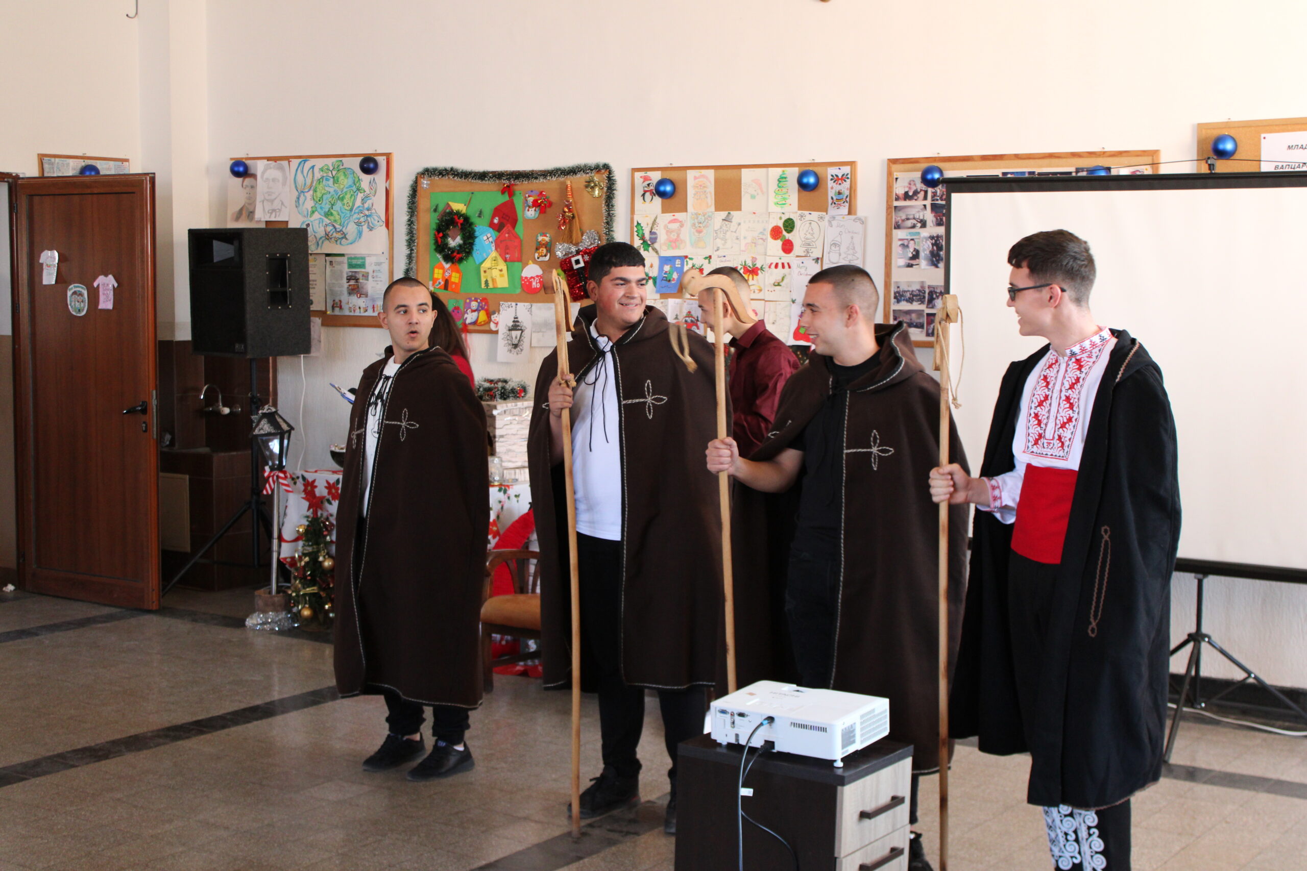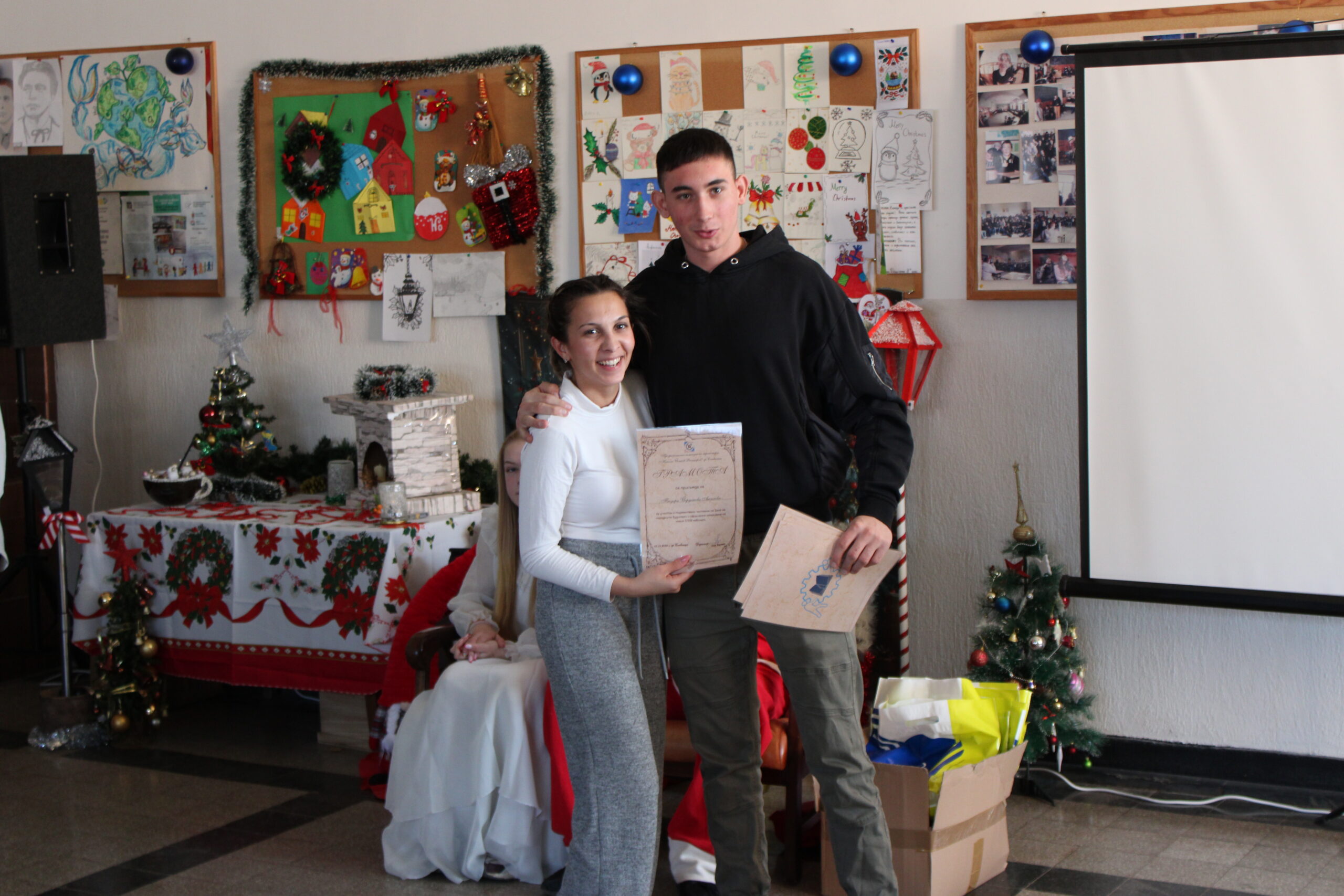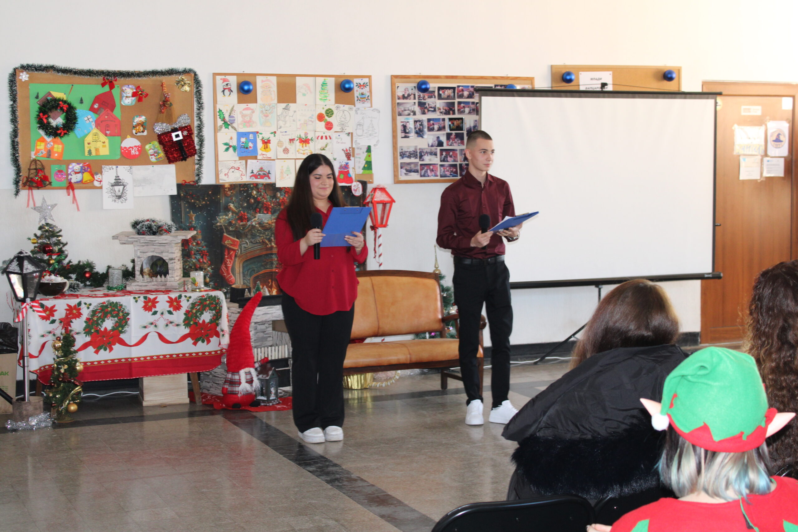 За празничната атмосфера и коледната украса на събитието основна заслуга имаха г-жа Ванеса Ангелова, г-жа Велина Димитрова и г-жа Красимира Миленкова. С много вкус, старание и внимание към детайла те допринесоха за създаването на топла и уютна коледна обстановка, която направи тържеството още по-вълнуващо и незабравимо за всички присъстващи. Учениците от 12. А клас, бяха отбелязани за най-добре украсена класна стая.
