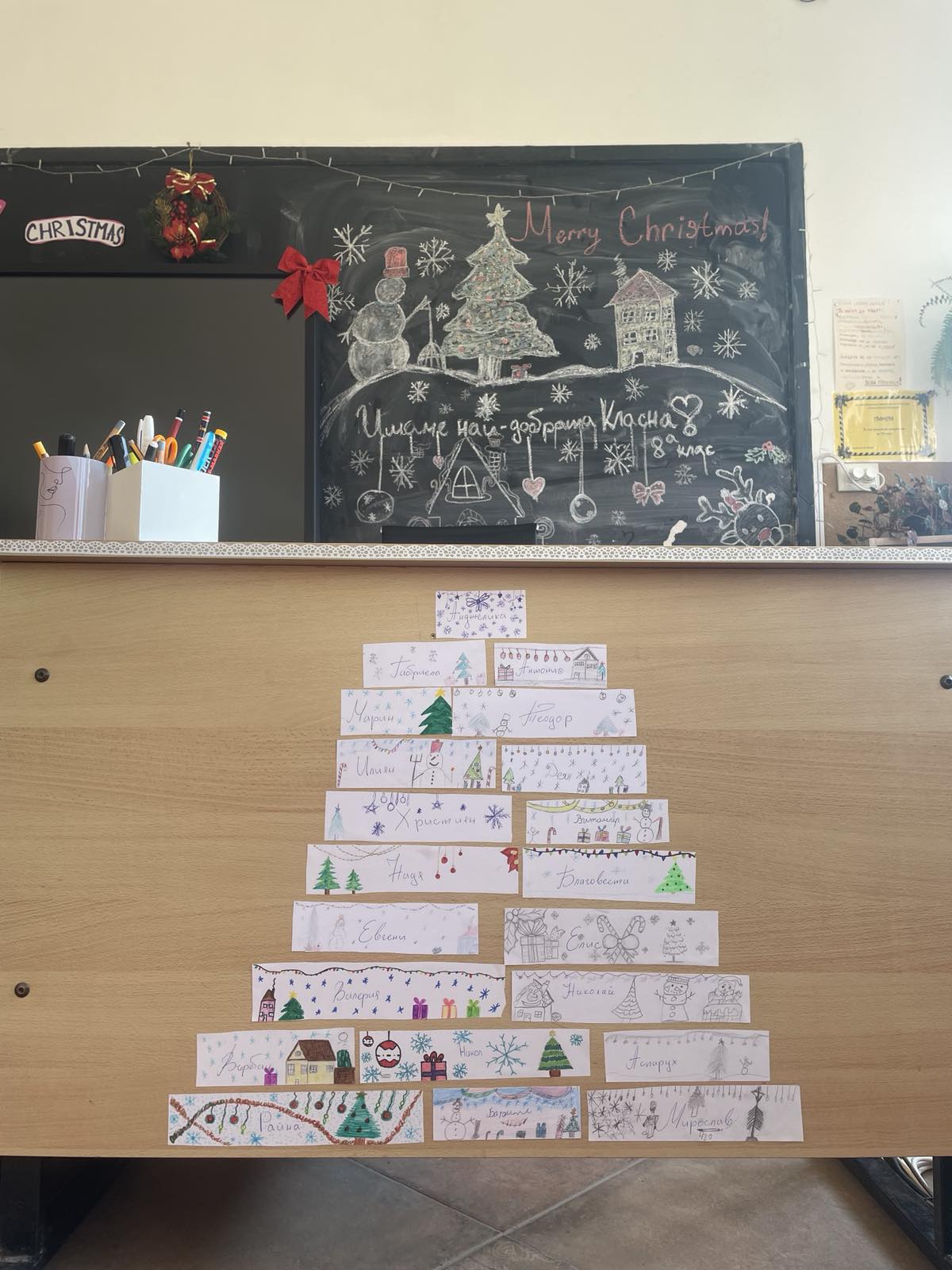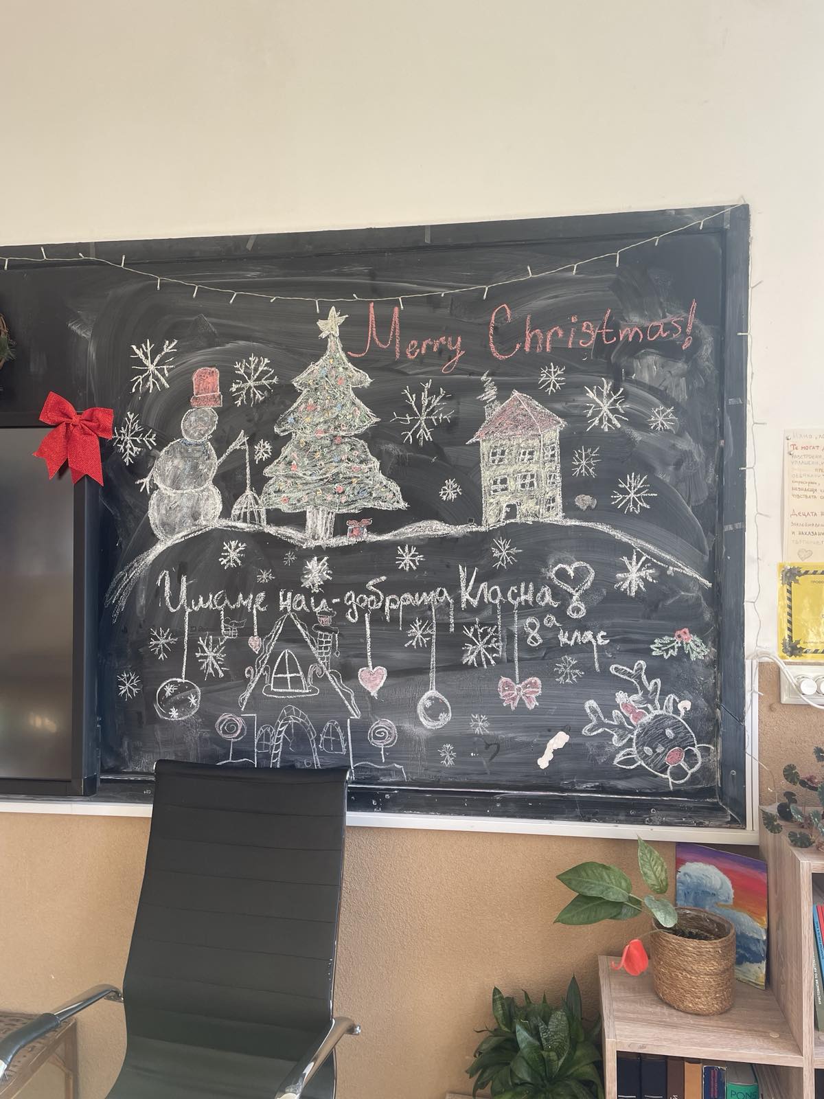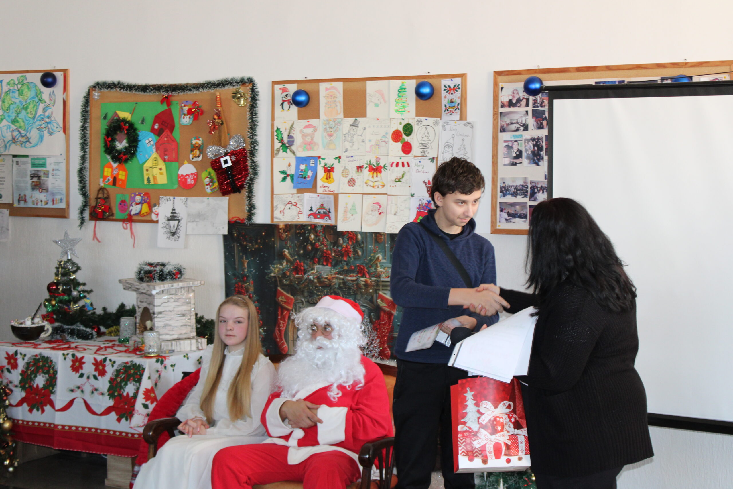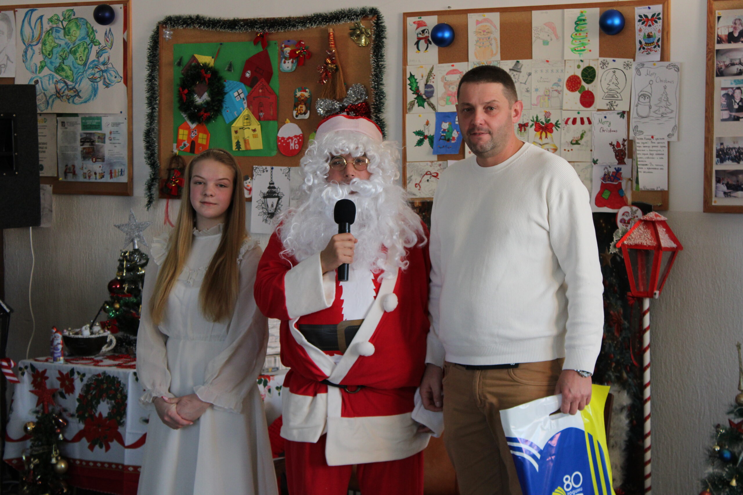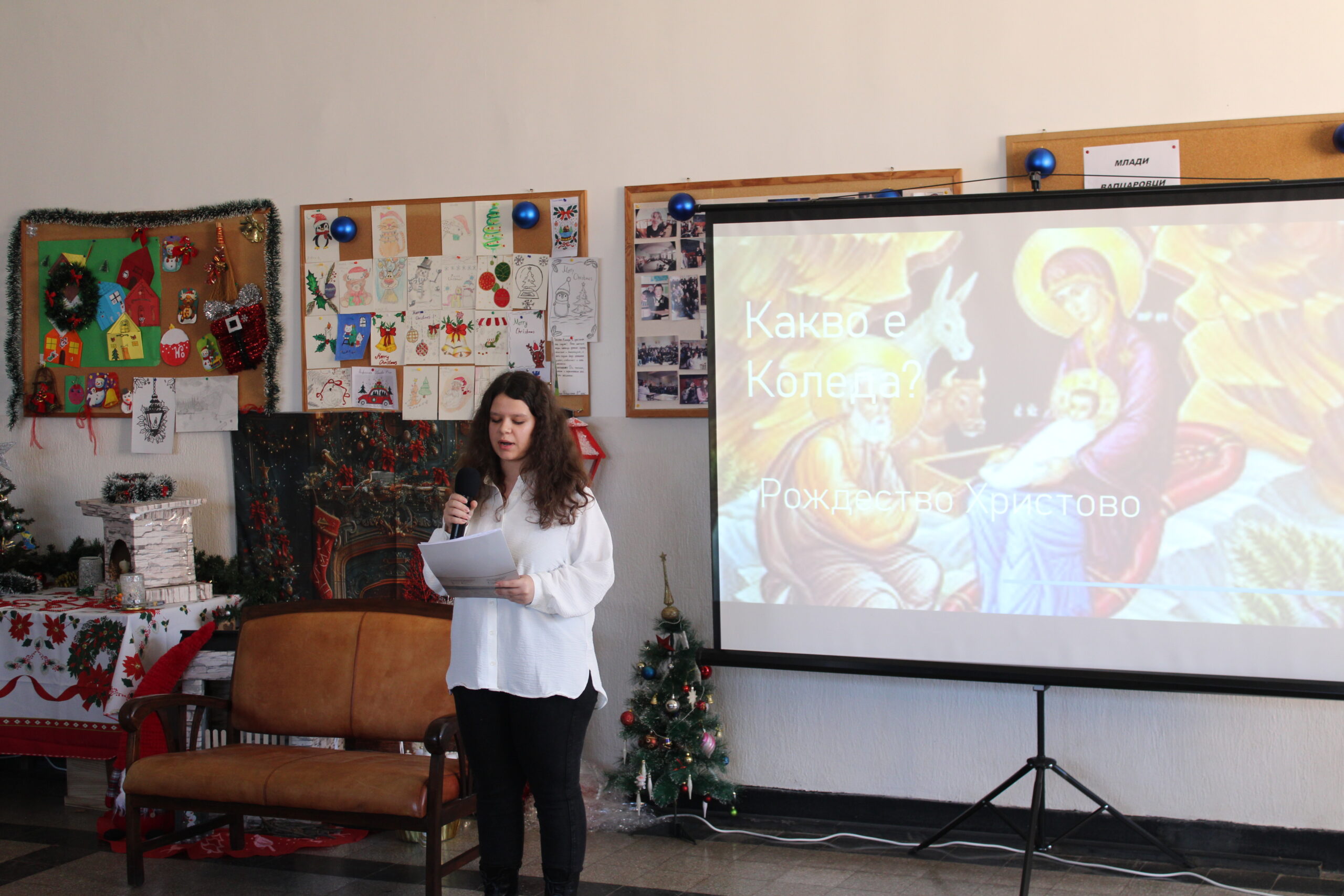 За празничната атмосфера и коледната украса на събитието основна заслуга имаха г-жа Ванеса Ангелова, г-жа Велина Димитрова и г-жа Красимира Миленкова. С много вкус, старание и внимание към детайла те допринесоха за създаването на топла и уютна коледна обстановка, която направи тържеството още по-вълнуващо и незабравимо за всички присъстващи. Учениците от 12. А клас, бяха отбелязани за най-добре украсена класна стая.