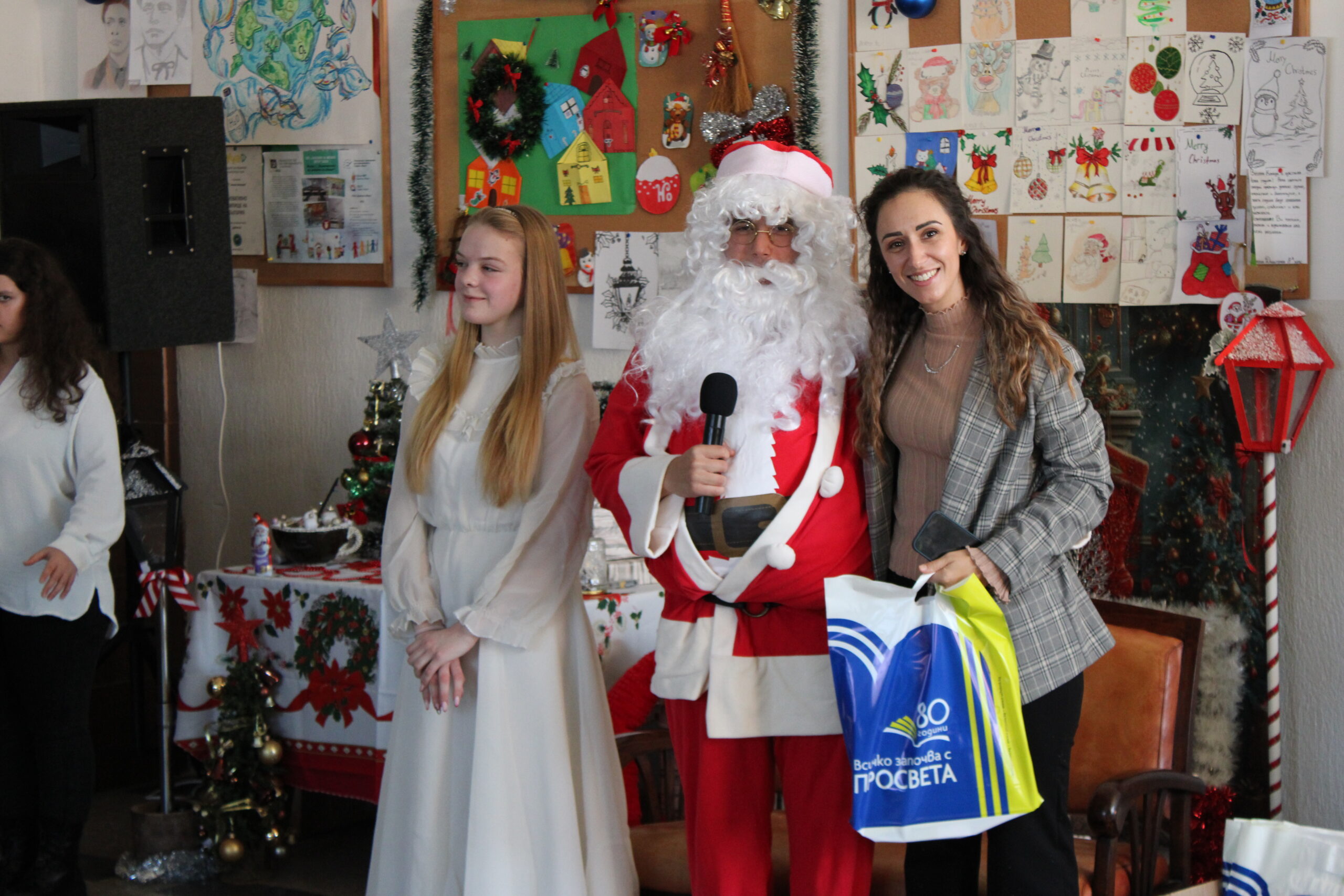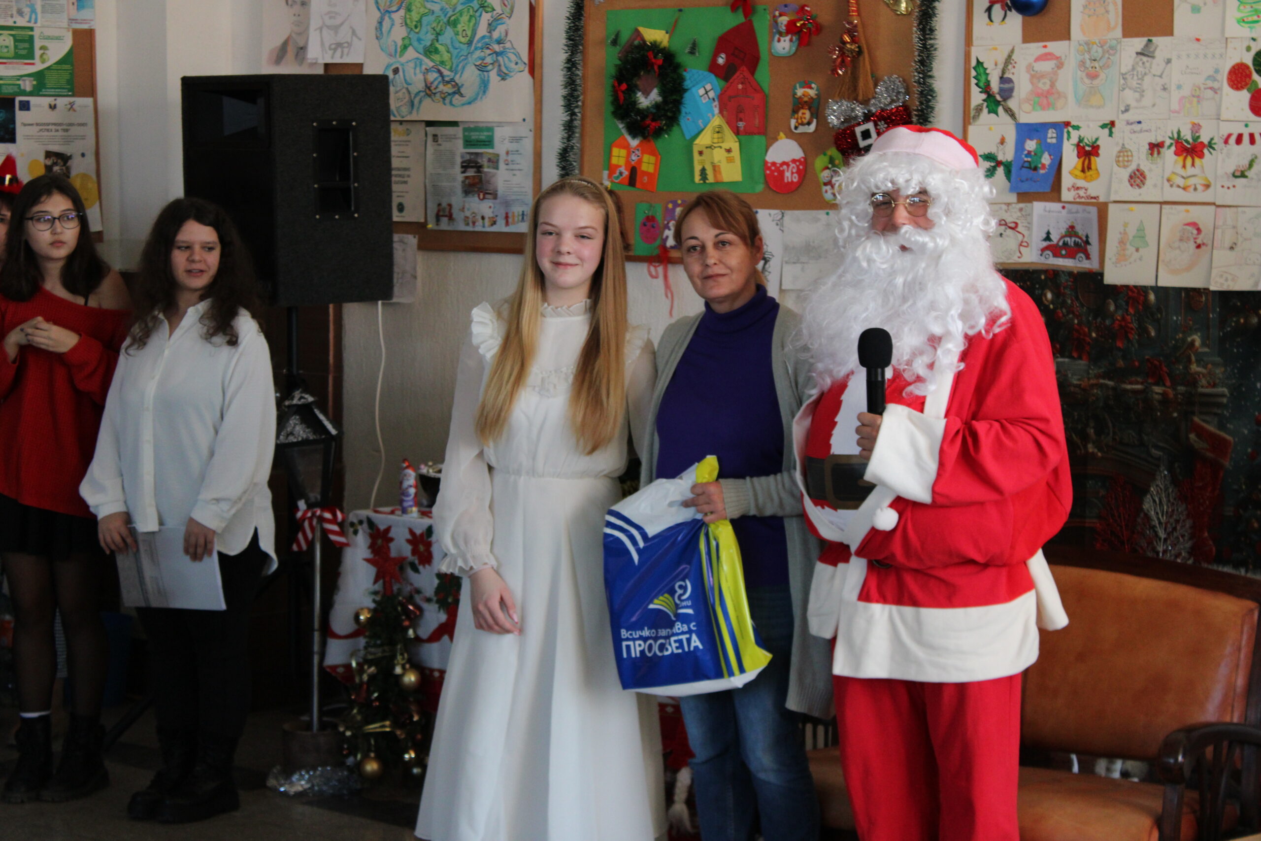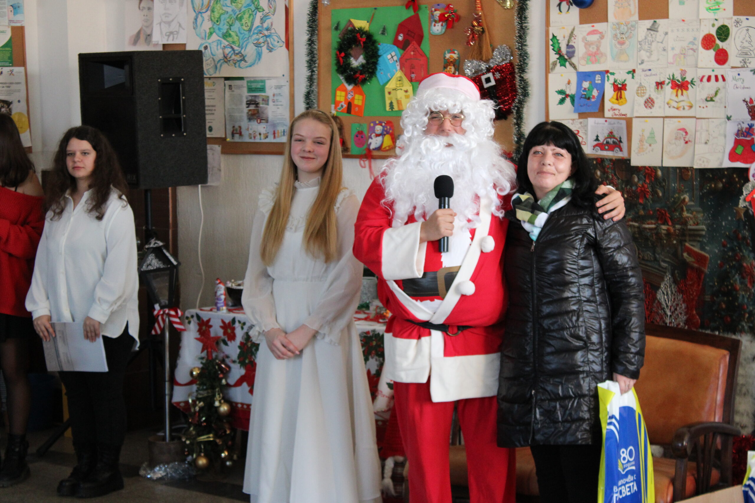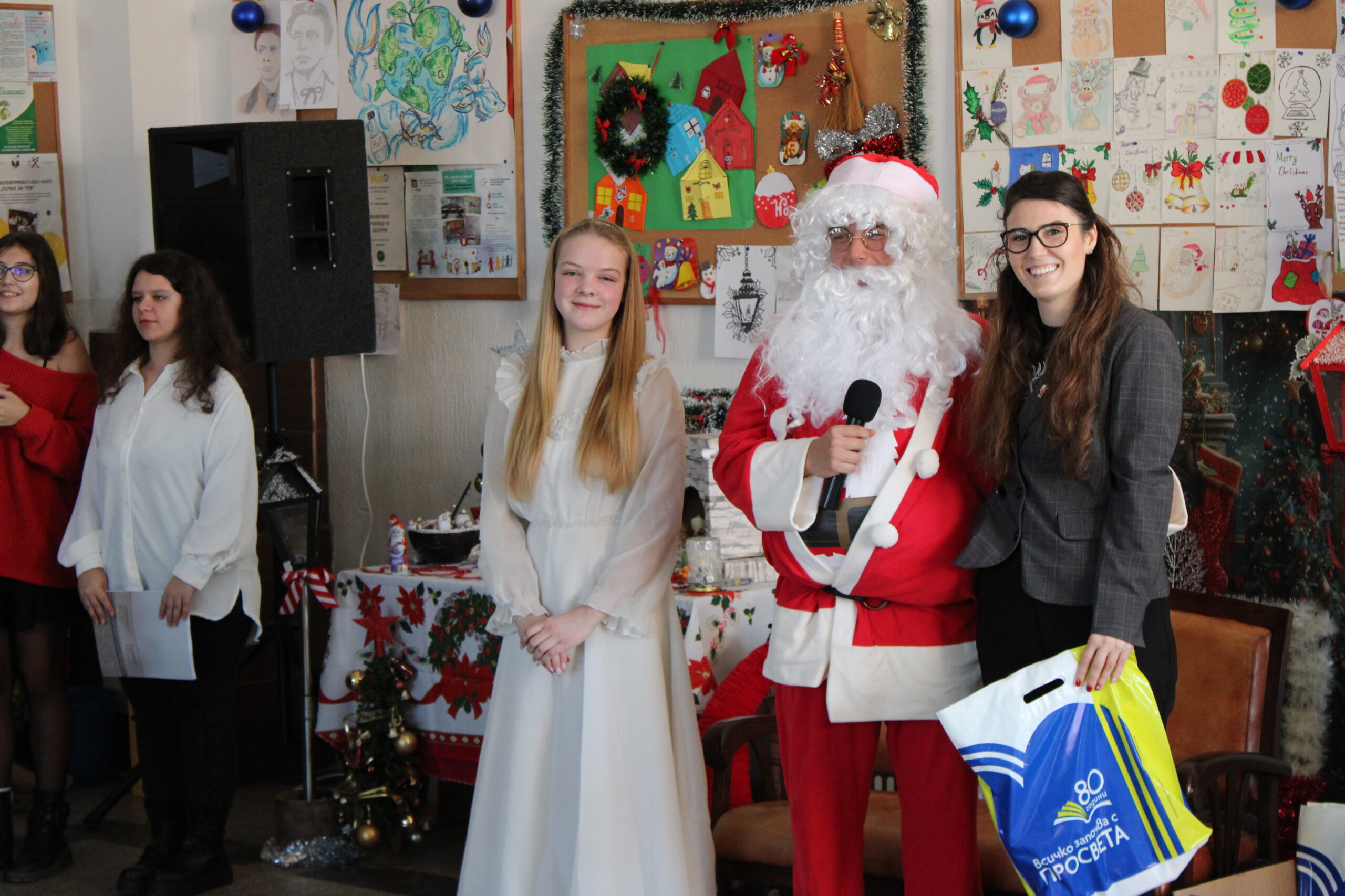 Празничното настроение беше допълнено и от трогателни моменти. Учениците от 11. А клас не пропуснаха да изненадат своята класна ръководителка г-жа Катя Димитрова по случай рождения ѝ ден. Учителите получиха коледни подаръци от Дядо Коледа от името на издателска група „Просвета“, а специални подаръци зарадваха и най-малките гости на училището.