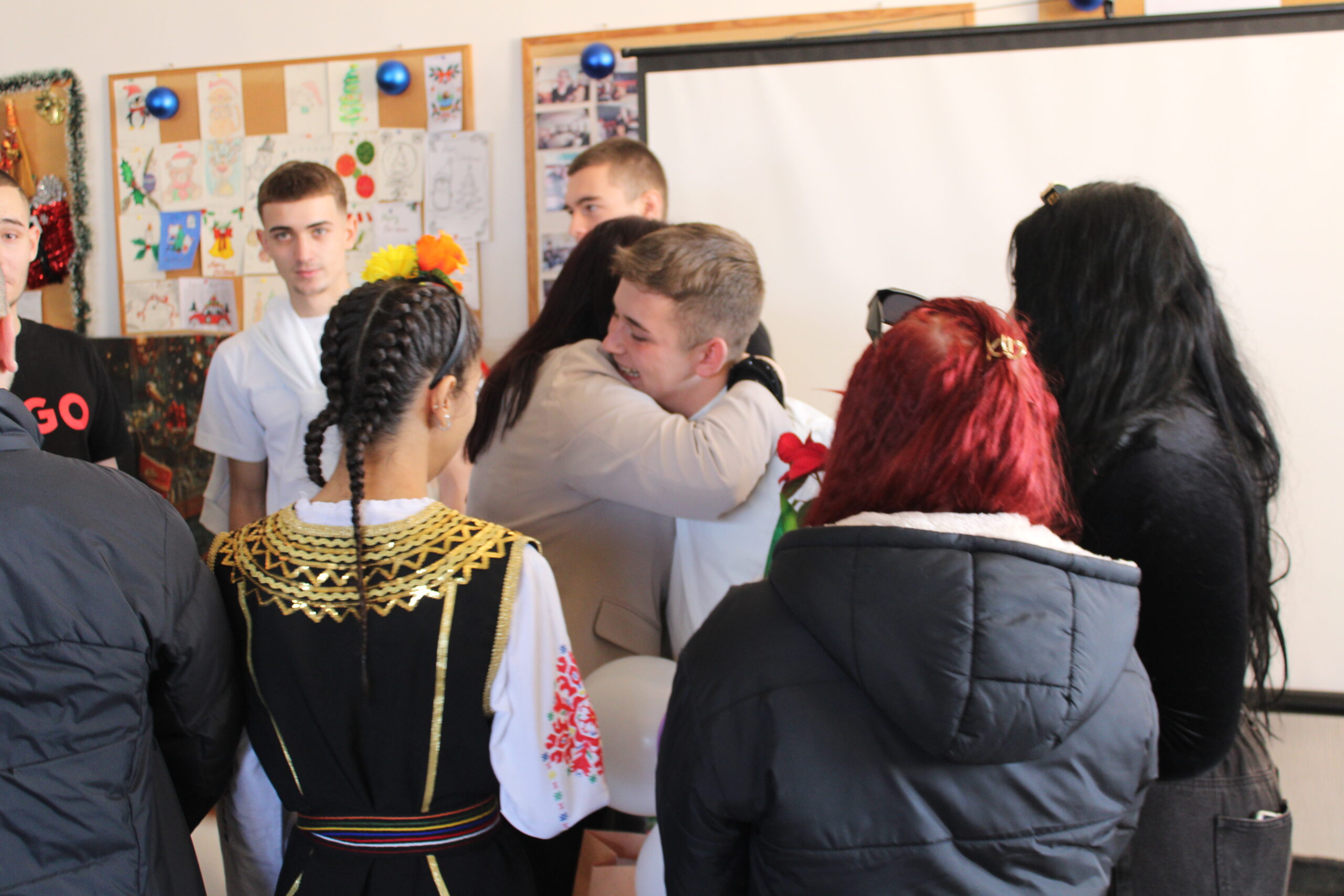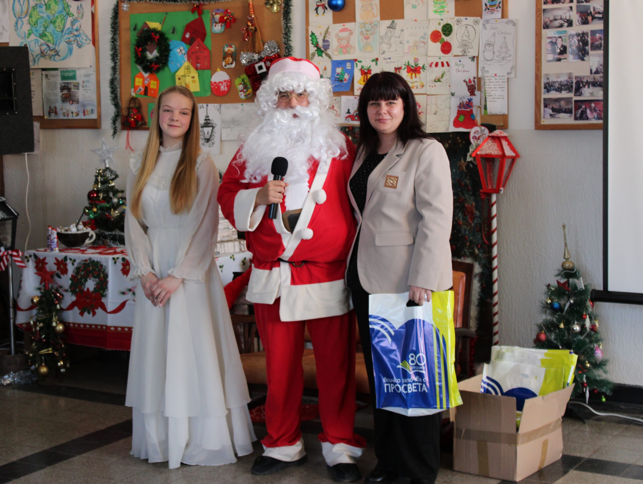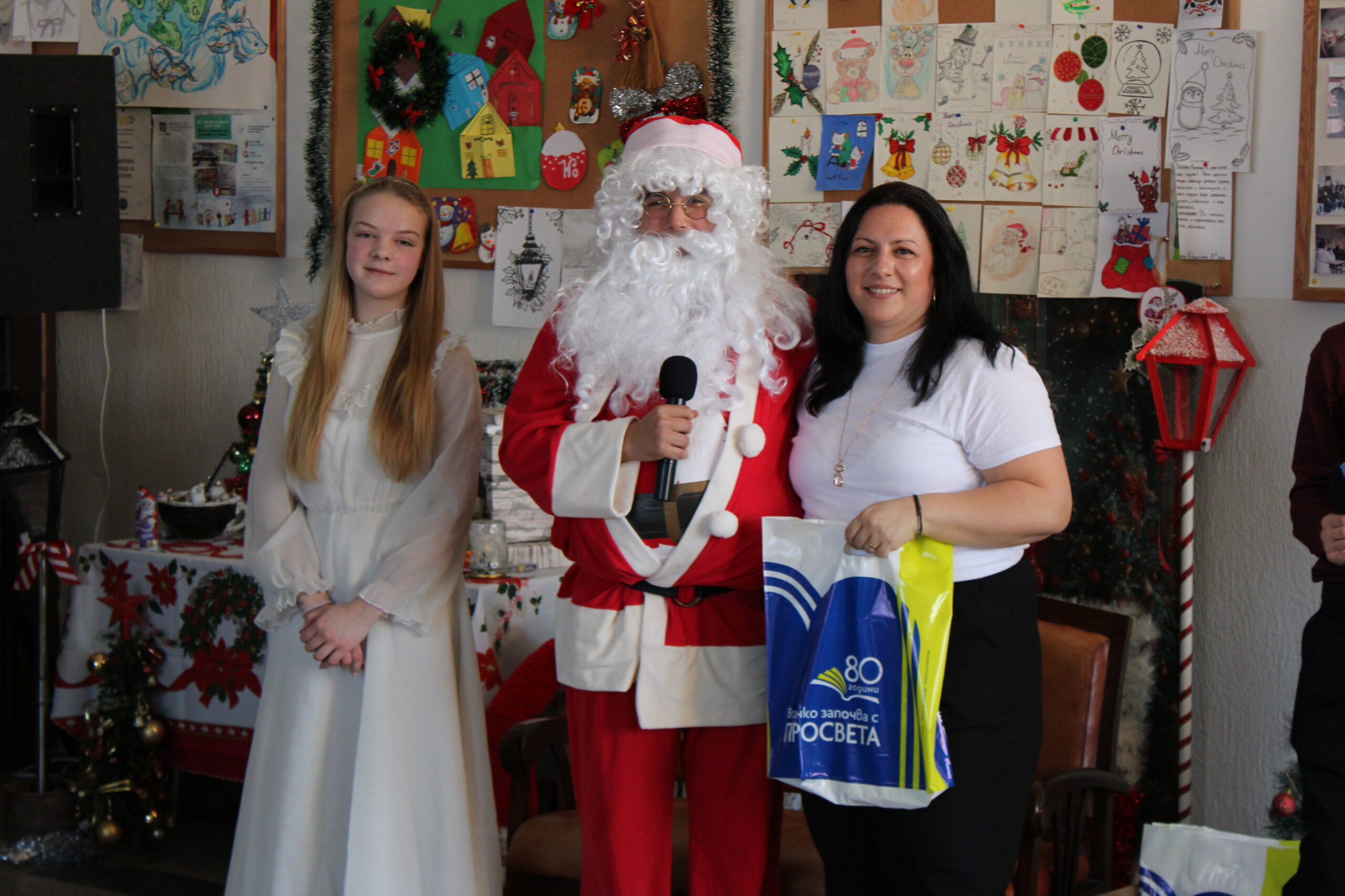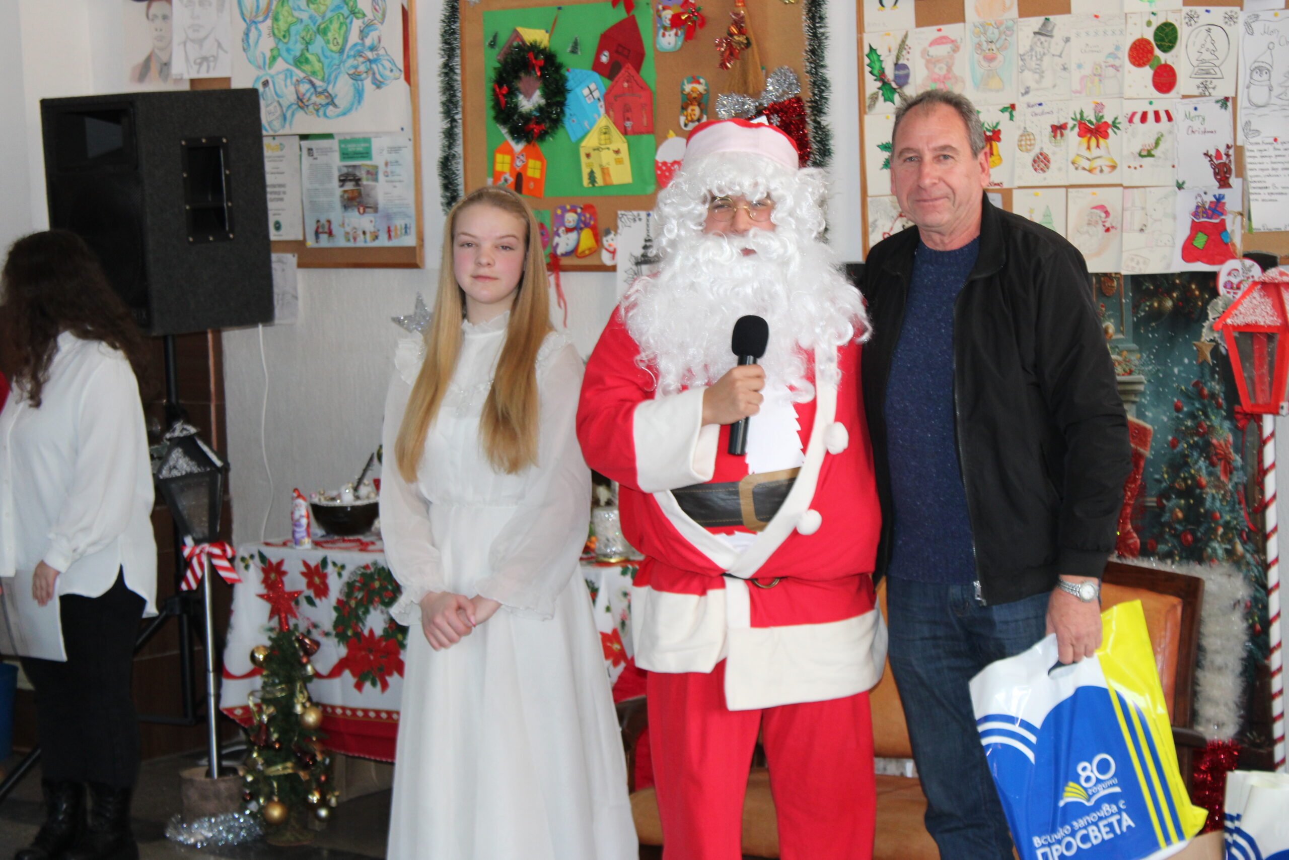 Празничното настроение беше допълнено и от трогателни моменти. Учениците от 11. А клас не пропуснаха да изненадат своята класна ръководителка г-жа Катя Димитрова по случай рождения ѝ ден. Учителите получиха коледни подаръци от Дядо Коледа от името на издателска група „Просвета“, а специални подаръци зарадваха и най-малките гости на училището.
