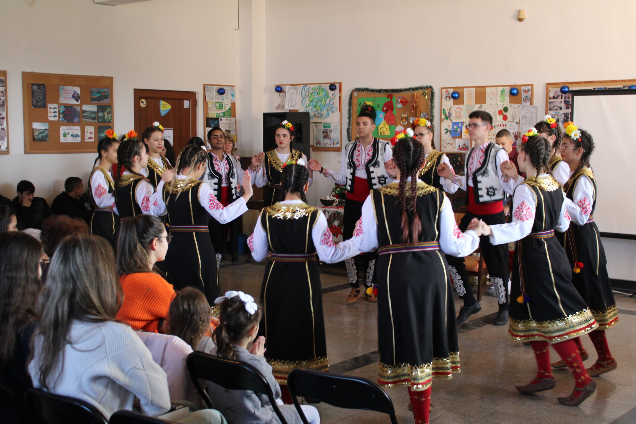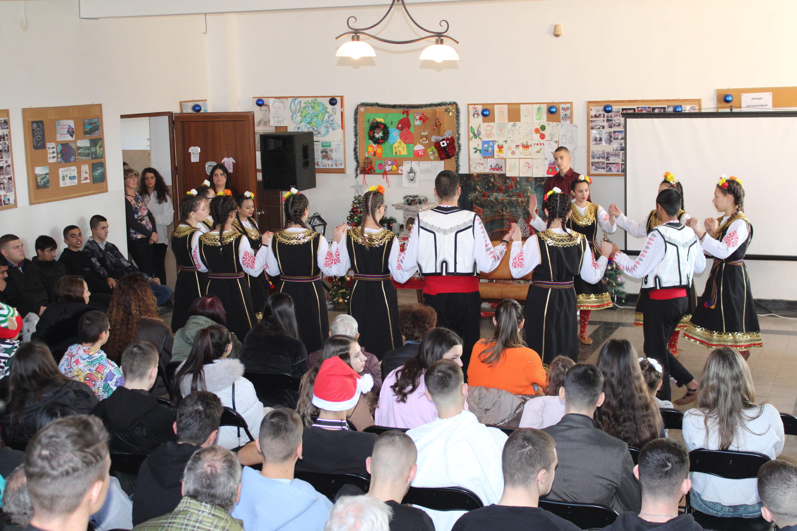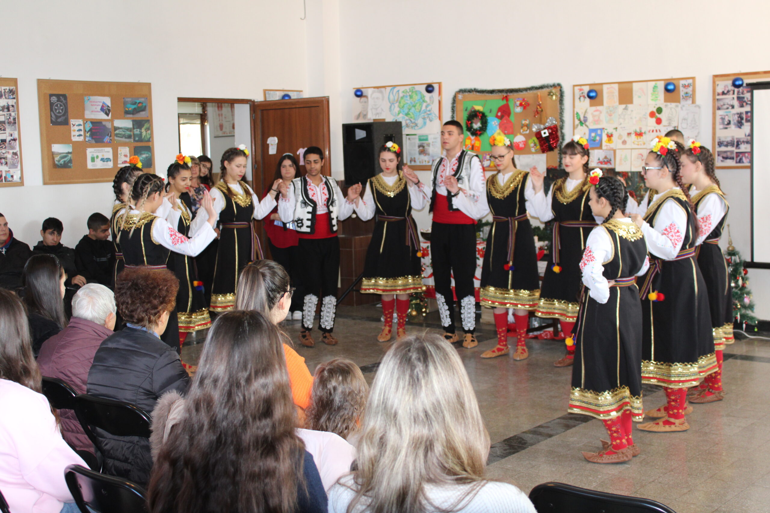 Празничната програма създаде истинско коледно настроение, а танцовият състав на гимназията с ръководител г-жа Мариана Григорова потопи присъстващите в магията на българските традиции с красиво изпълнено коледно хоро, изпълнено с ритъм, енергия и празничен дух.