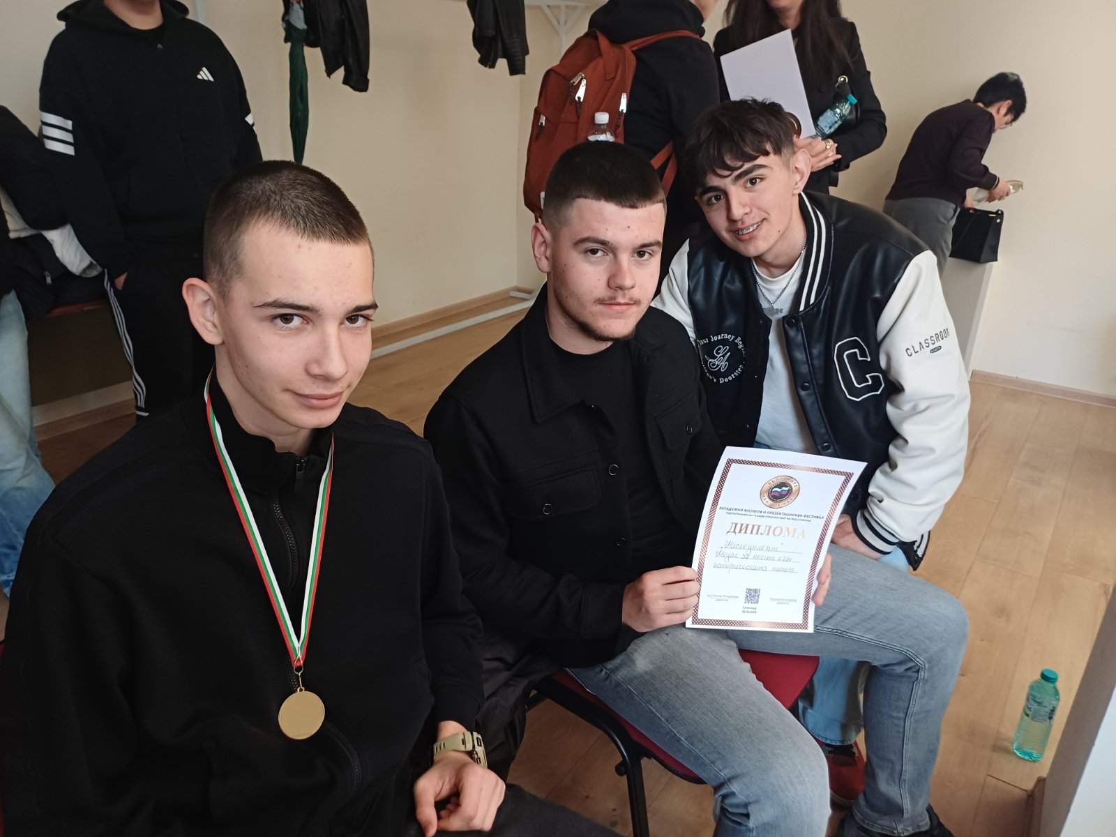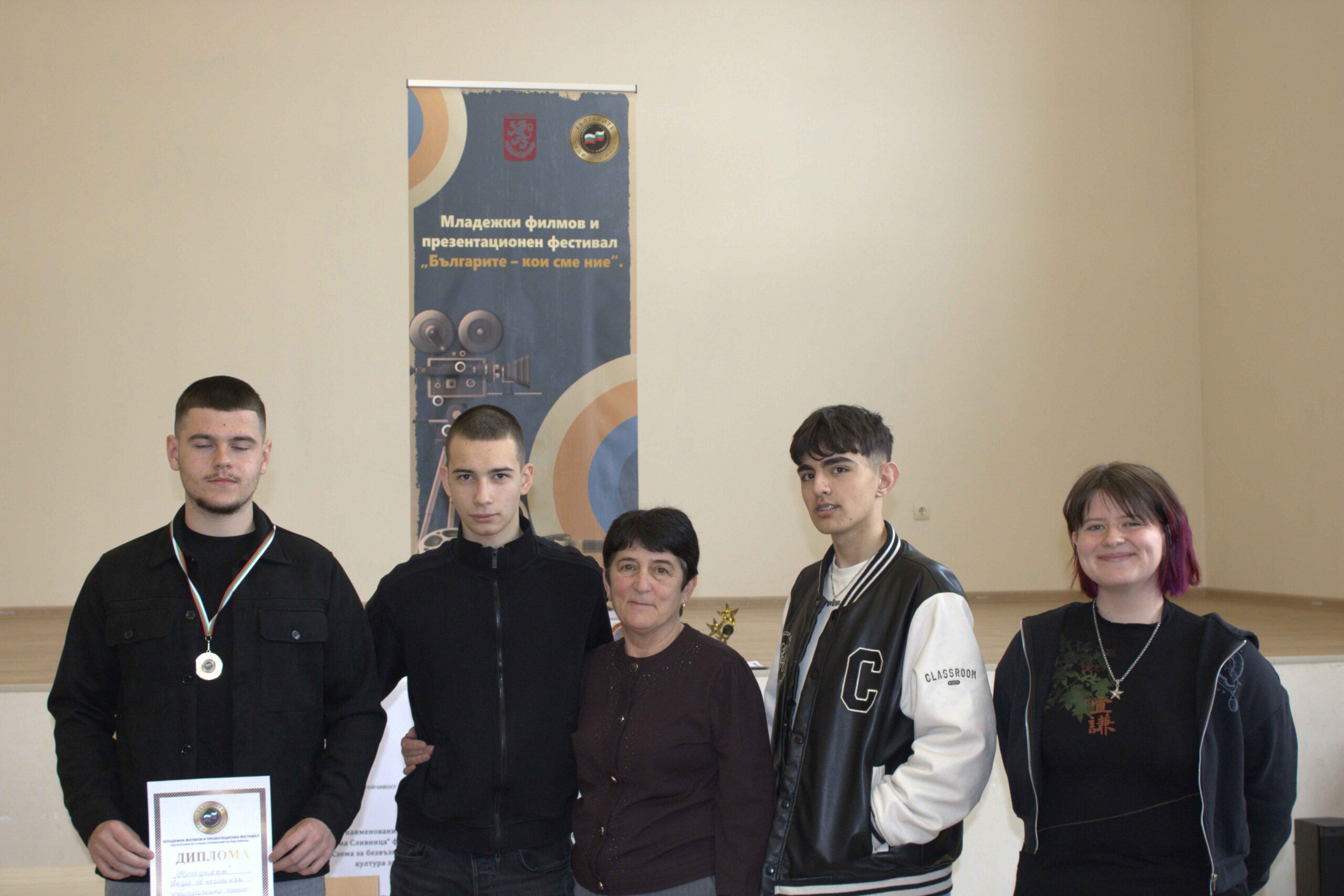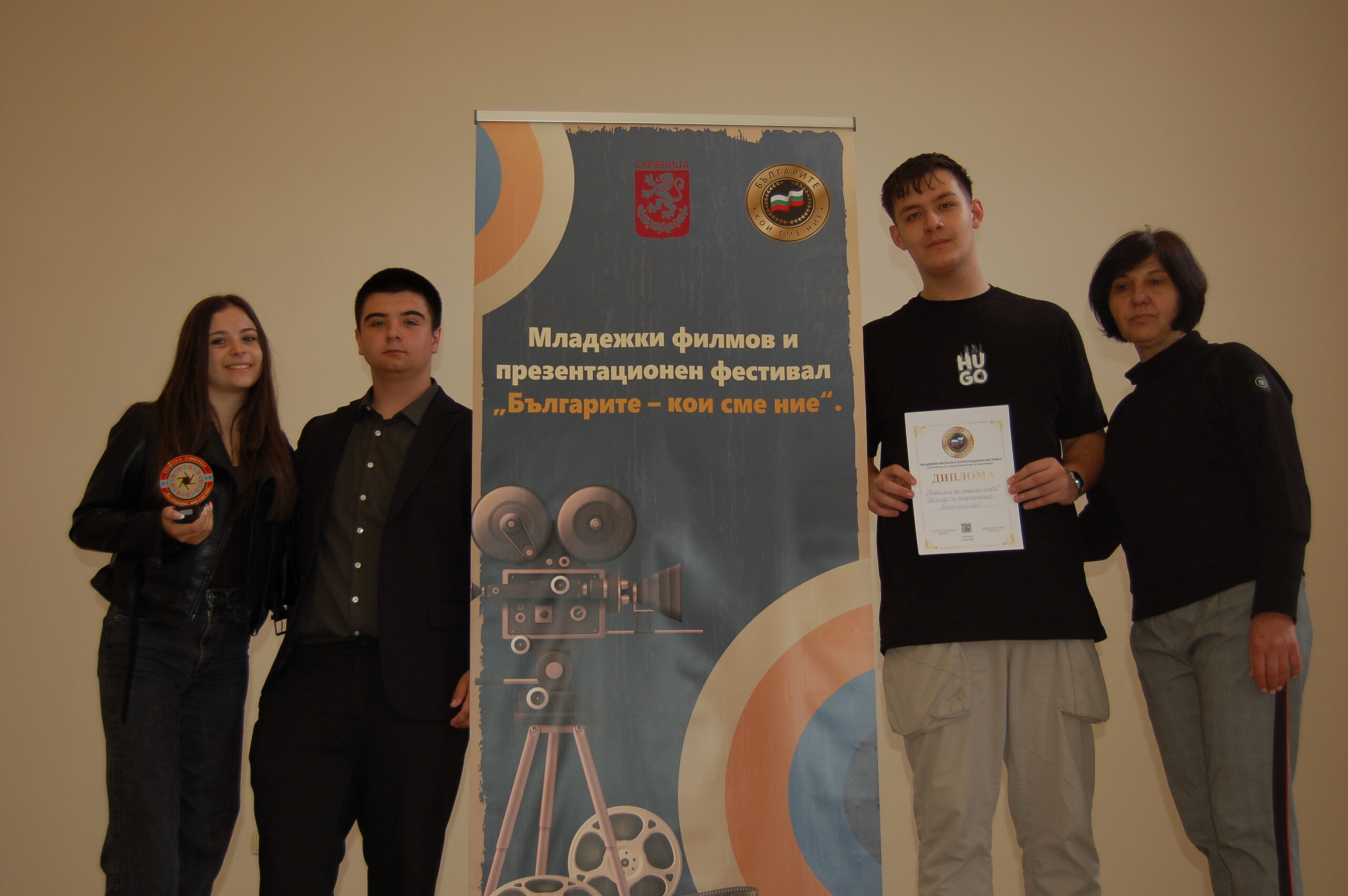 На 28.03.2026г. в сграда „Б“ на НЧ „Съзнание 1907“ гр. Сливница се проведе и официалното награждаване на участниците в младежкия филмов и презентационен фестивал „Българите – кои сме ние“. С гордост можем да отбележим, че учениците от нашето училище бяха отличени с диплом и медал за своя филм „Наследникът“ – проект, изцяло реализиран от ученици, с участието на господин Никола Вапцаров – наследник на патрона на училището.
