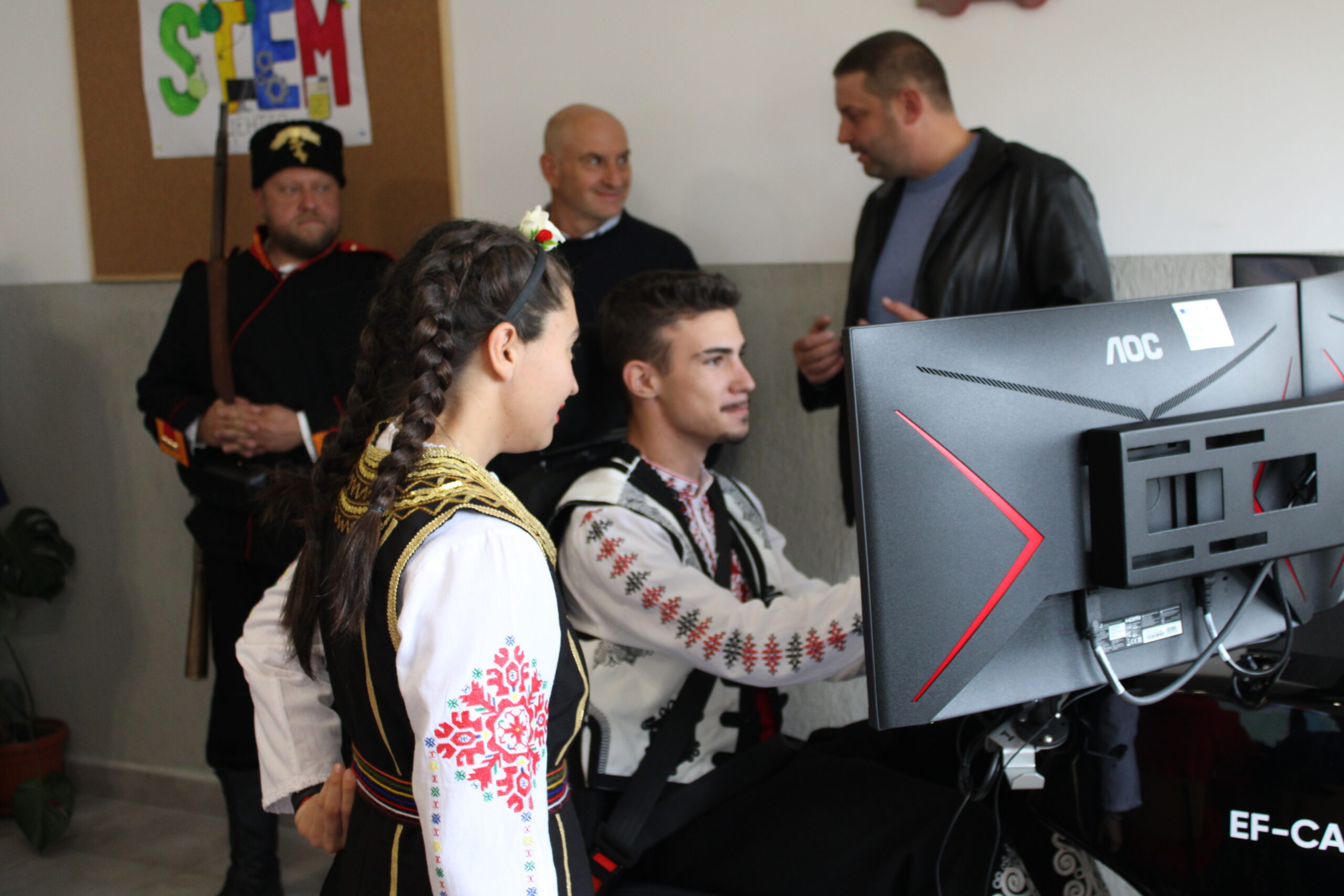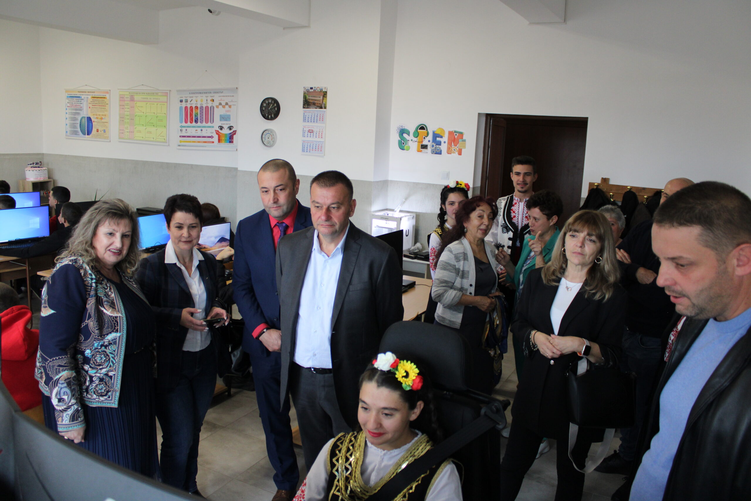 След тържествената програма г-жа Оля Зарева – директор на ПГТ „Н.Й. Вапцаров“, и гостите тържествено прерязаха лентата на новия STEM кабинет. Кабинетът разполага с 26 работни места, автомобилен симулатор и 3D принтер – иновации, които ще дадат възможност на нашите ученици да учат чрез преживяване.