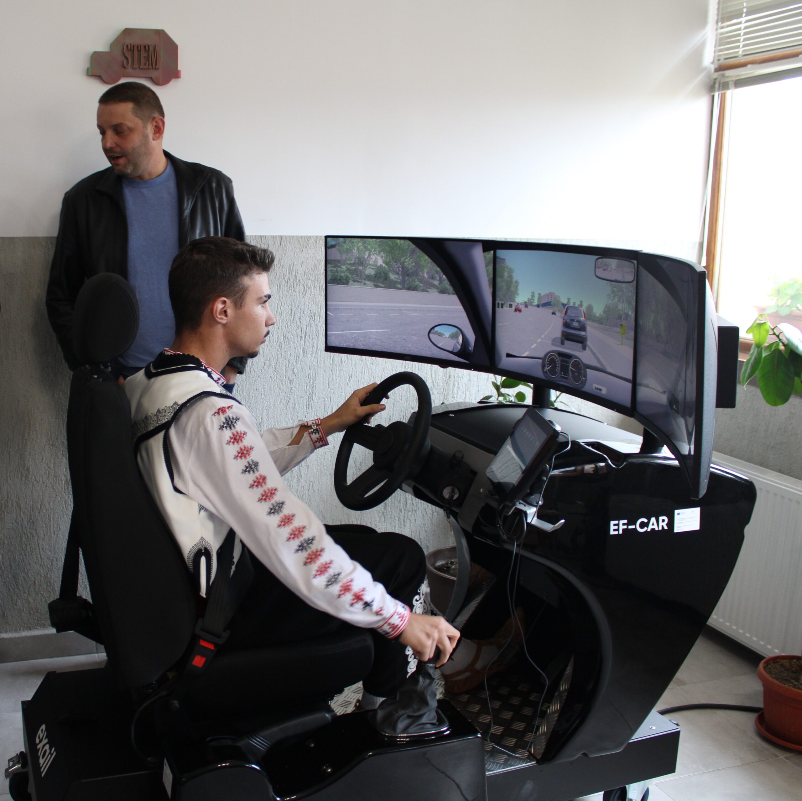 Симулаторът е част от СТЕМ проекта „Изграждане на училищна STEM среда в Професионална гимназия по транспорт „Никола Й. Вапцаров“, гр. Сливница“ BG-RRP-1.015-1599. Той ни дава възможност да се учим да шофираме в напълно безопасна и контролирана среда. Чрез него можем да упражняваме различни ситуации от реалния път – движение в градски условия, паркиране, шофиране при лошо време и други.