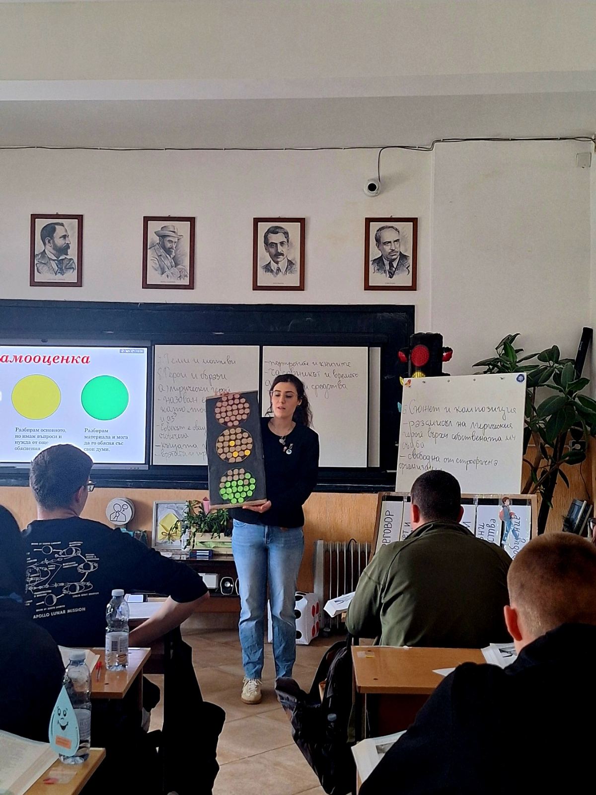 В края на урока бяха обобщени основните изводи, а учениците направиха самооценка на своята работа с помощта на светофар. Атмосферата в класната стая беше ангажираща и творческа, което показа, че литературата може да бъде не само учебен предмет, но и истинско преживяване.