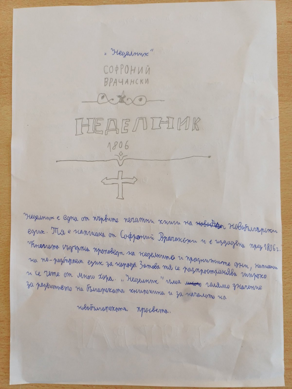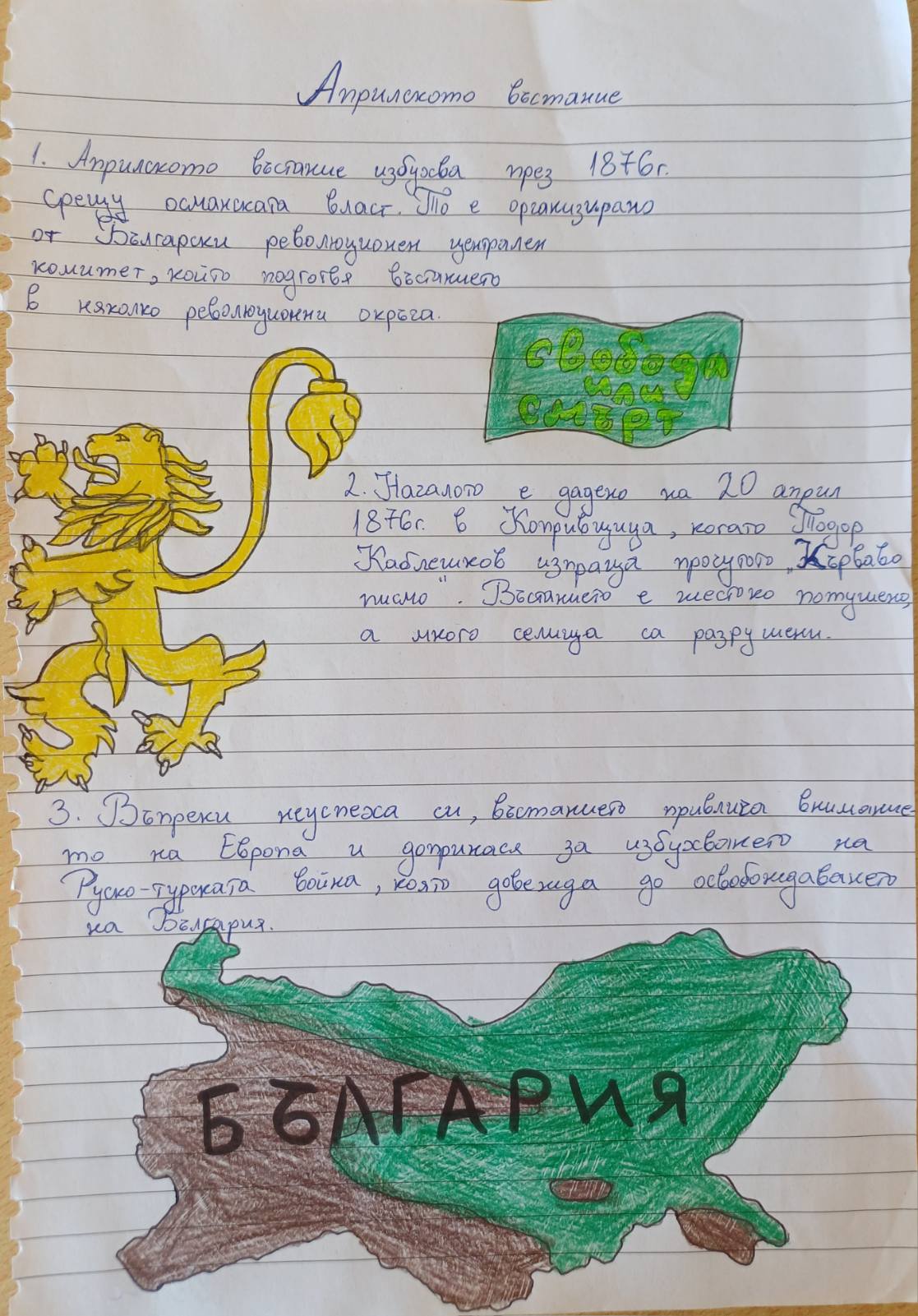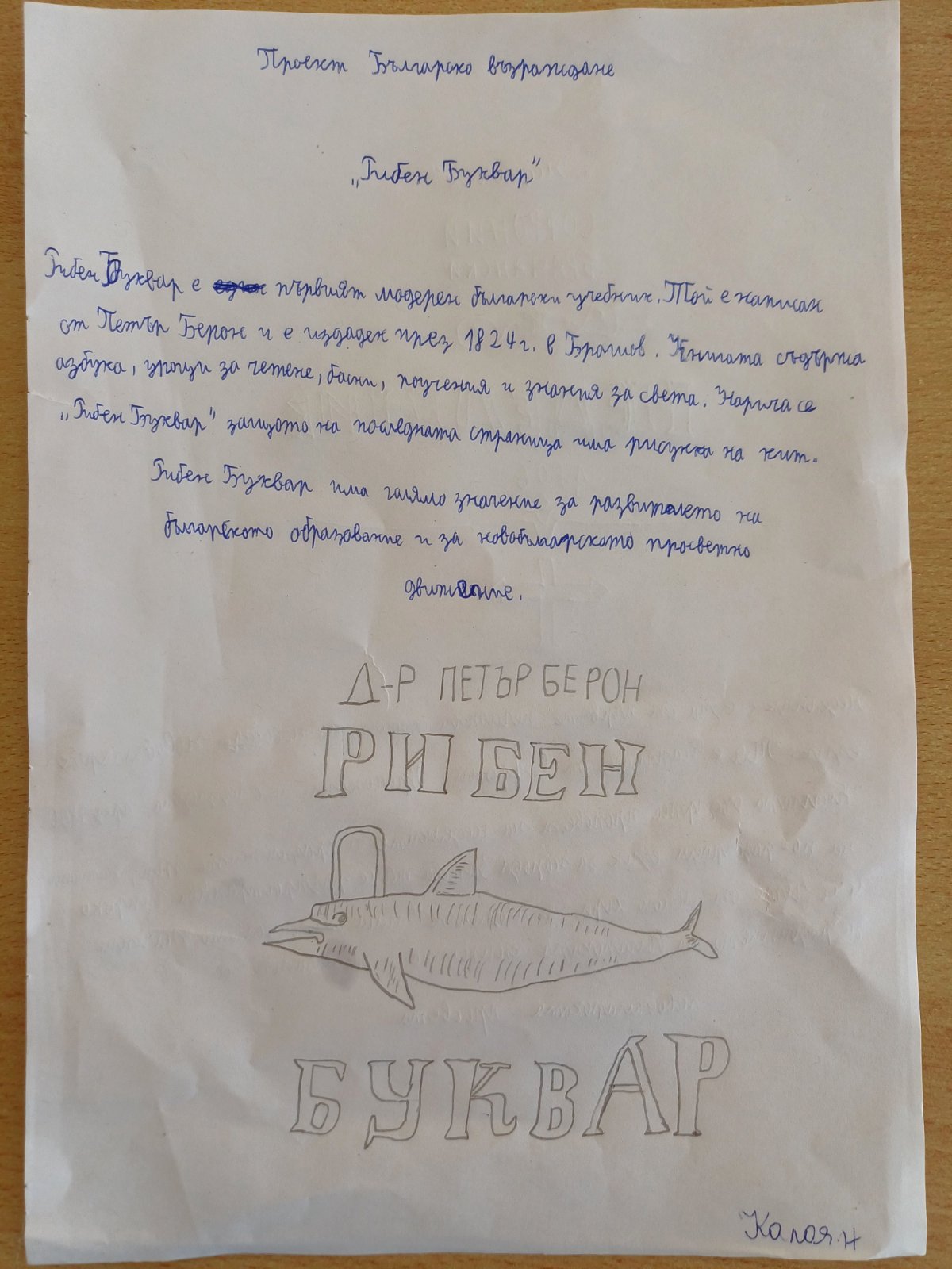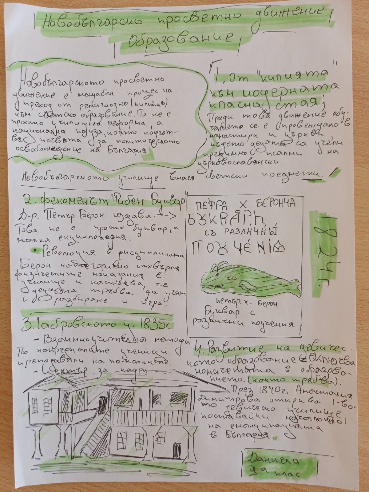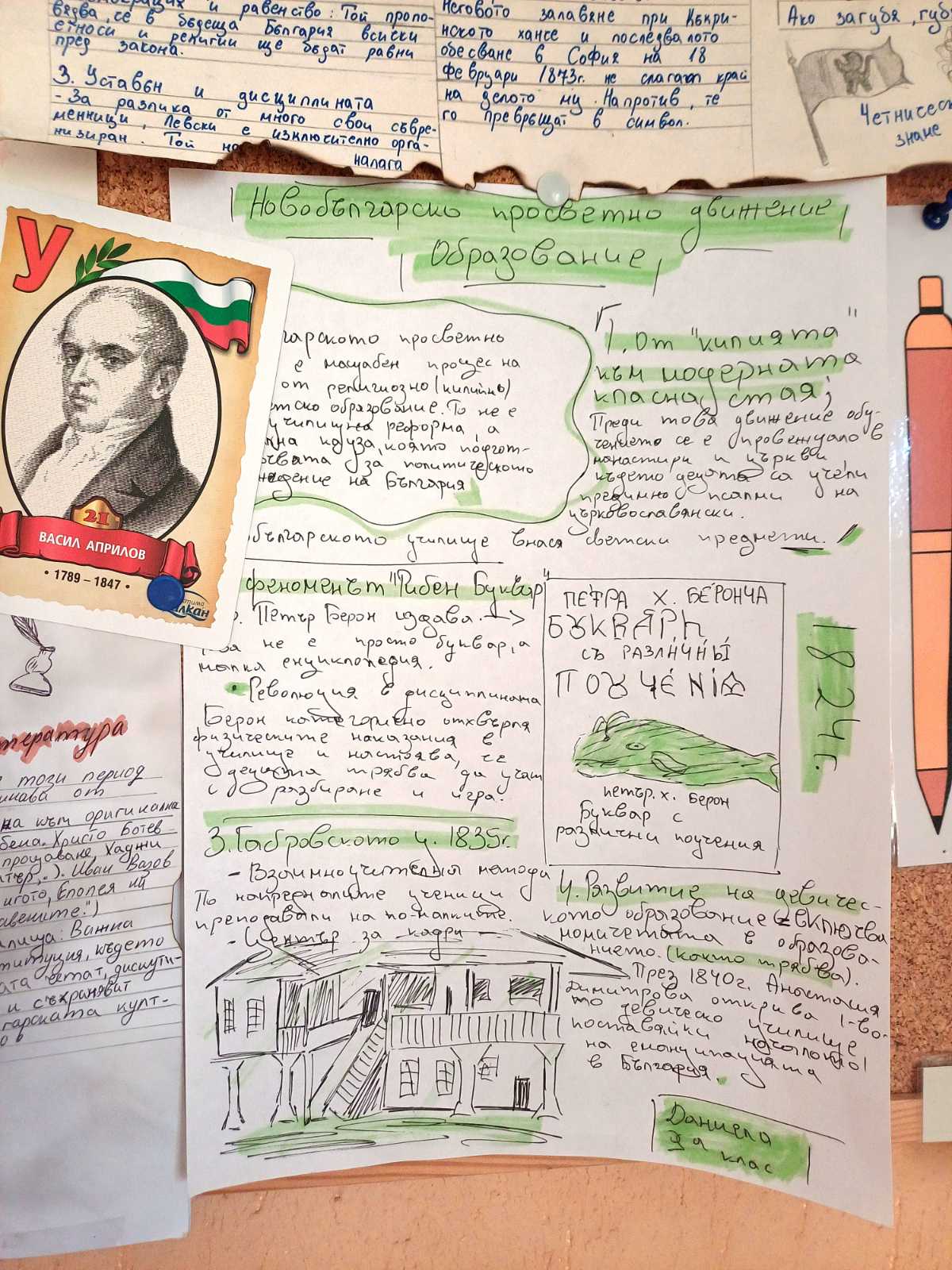 В рамките на поставената задача учениците проучиха богатството на възрожденската култура и книжнина – от развитието на образованието и езика до четническите движения и борбата за национално освобождение.