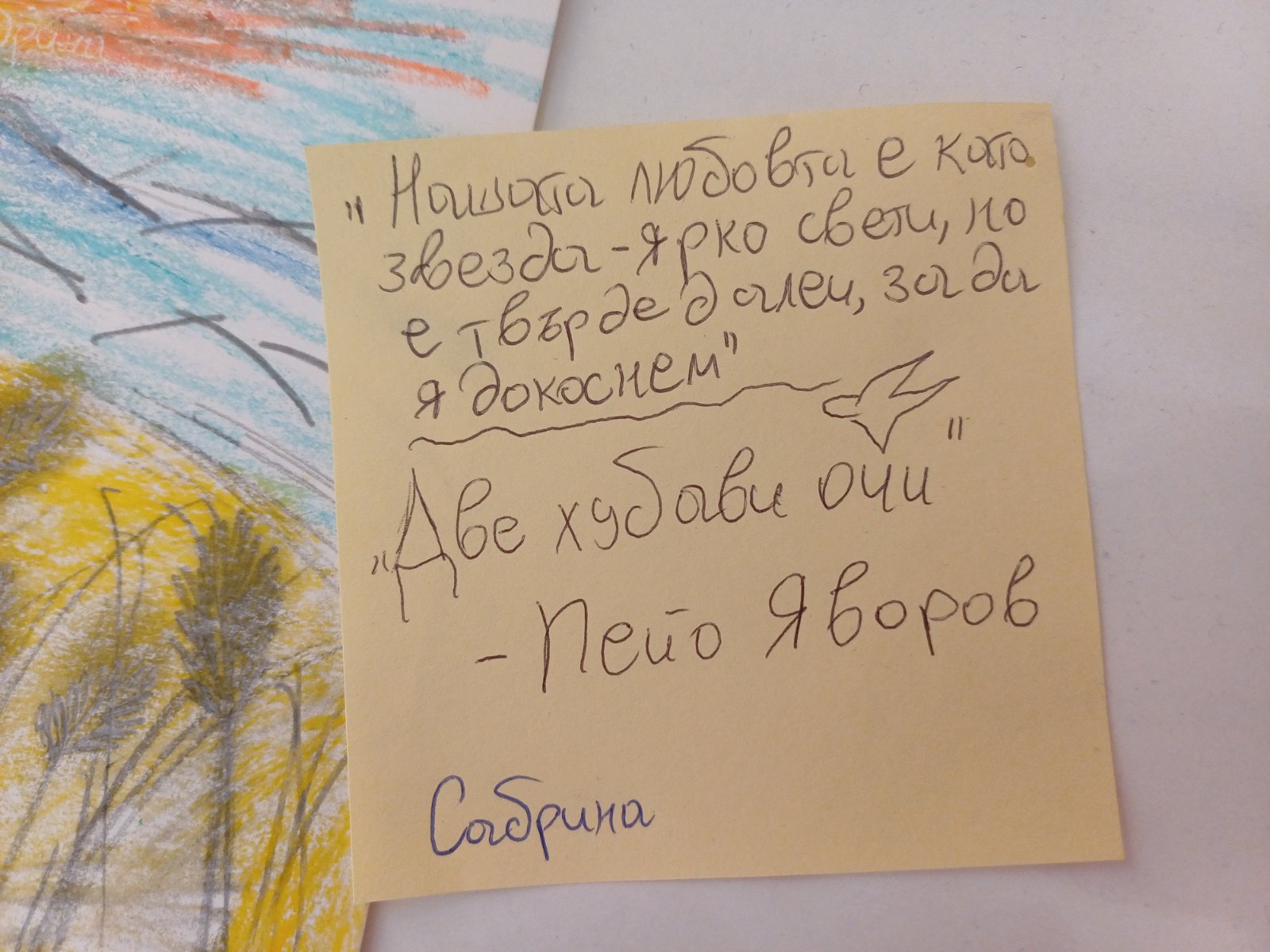 Ученици от 10. А и 10. Б клас представиха свои рисунки, вдъхновени от поезията на Пейо Яворов.