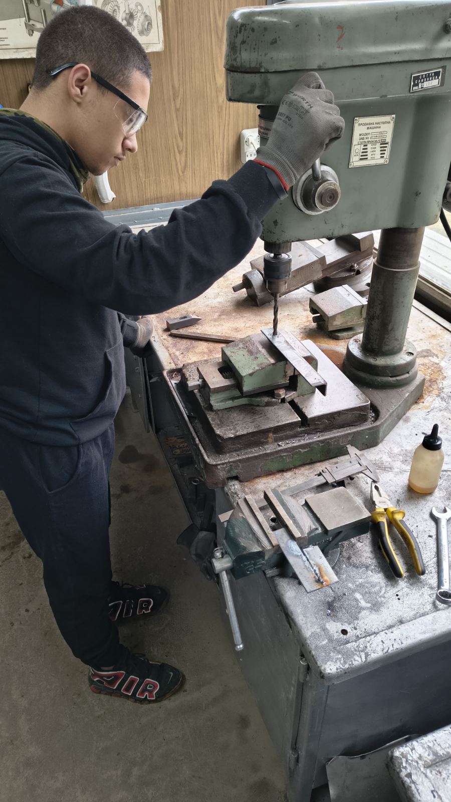 По време на урока учениците се запознаха с основните технологични операции при обработката на отвори в метални детайли. Бяха разгледани предназначението и приложението на пробиването, зенкероването и райбероването, както и използваните инструменти и машини. Акцент беше поставен върху правилния избор на режещи инструменти, последователността на операциите и спазването на правилата за безопасност при работа.
