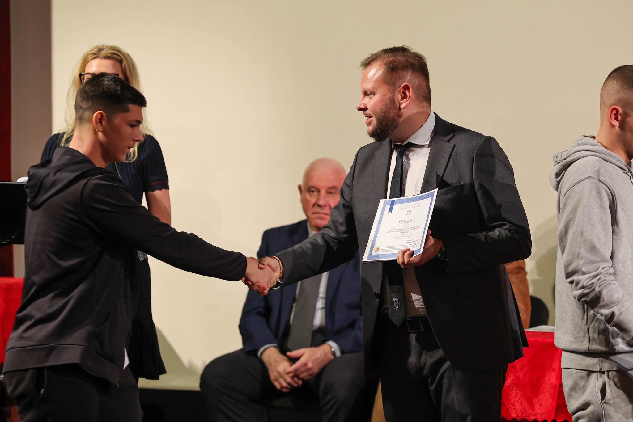 Днес нашите ученици бяха отличени с награда връчена от министър Петър Младенов-зам. министър на младежта и спорта, в Националната академия за театрално и филмово изкуство „Кръстьо Сарафов“ (НАТФИЗ).